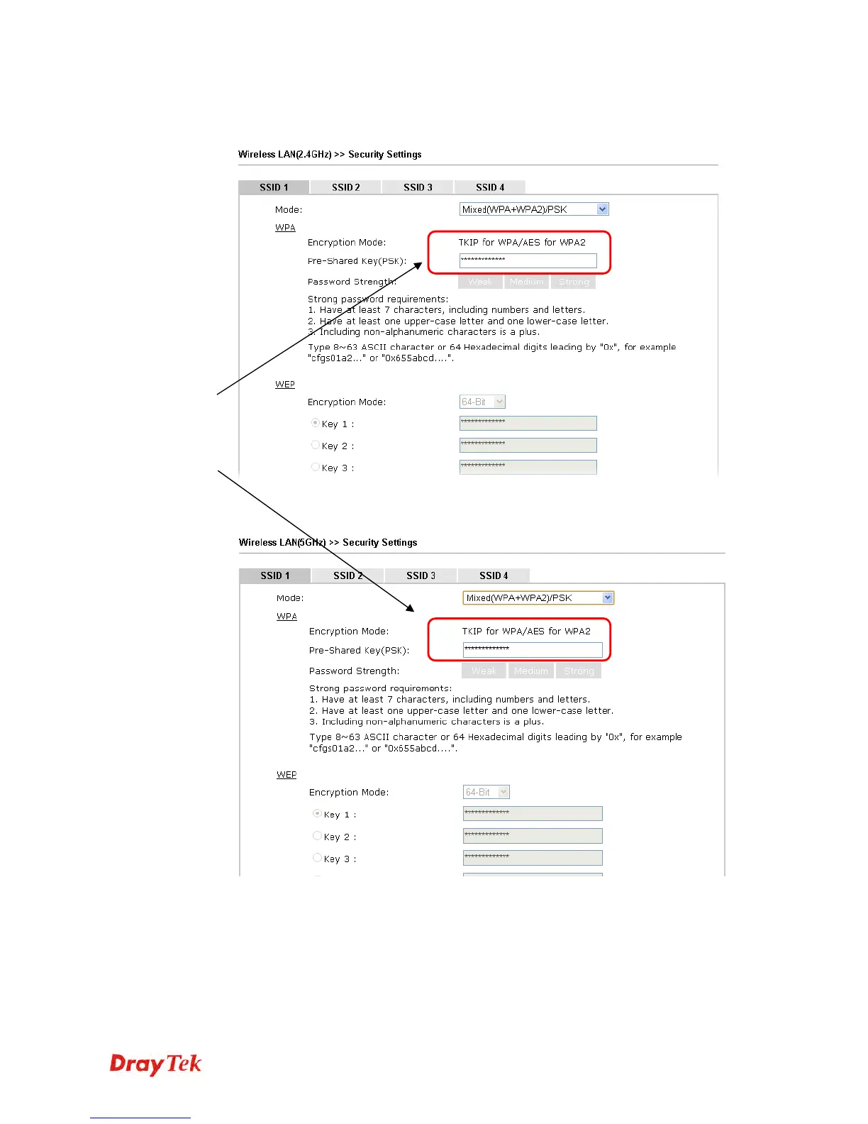 Configure Security as 12345678 for both pages. Click OK to save the settings.