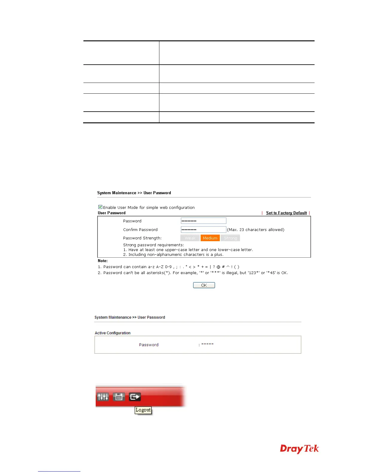 4. Log out Vigor router web user interface by clicking the Logout button.