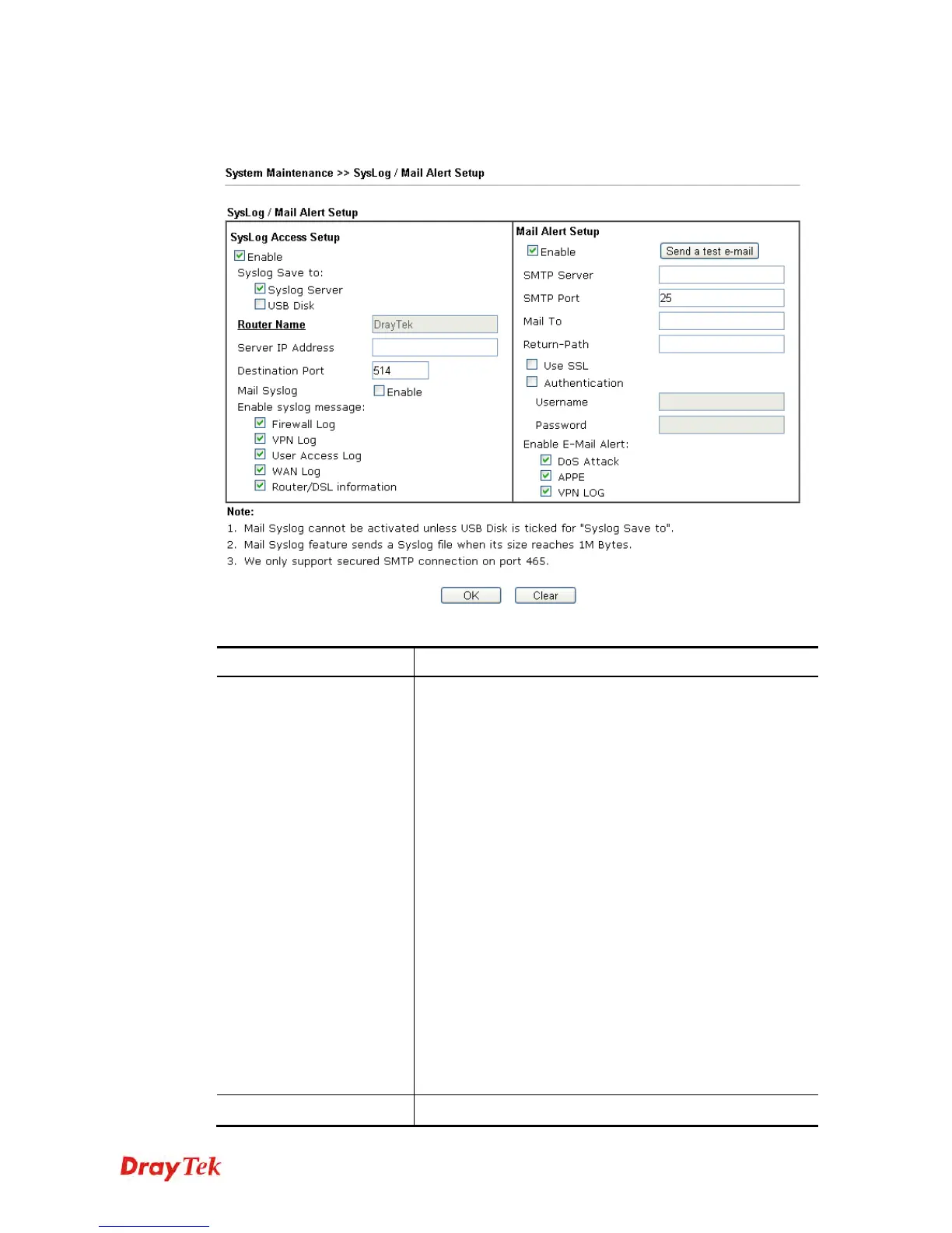 Mail Syslog – Check the box to recode the mail event on