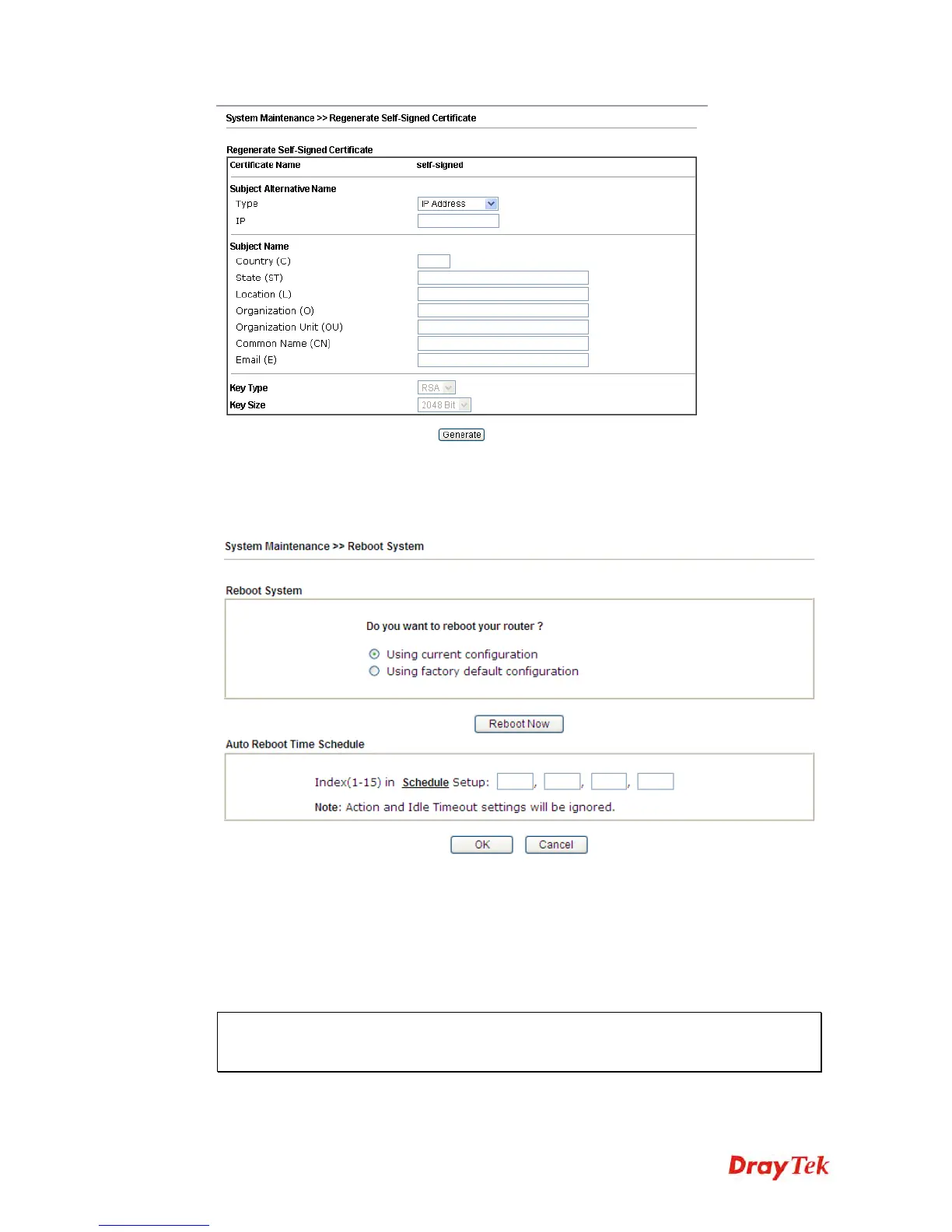 If you want to reboot the router using the current configuration, check Using current
