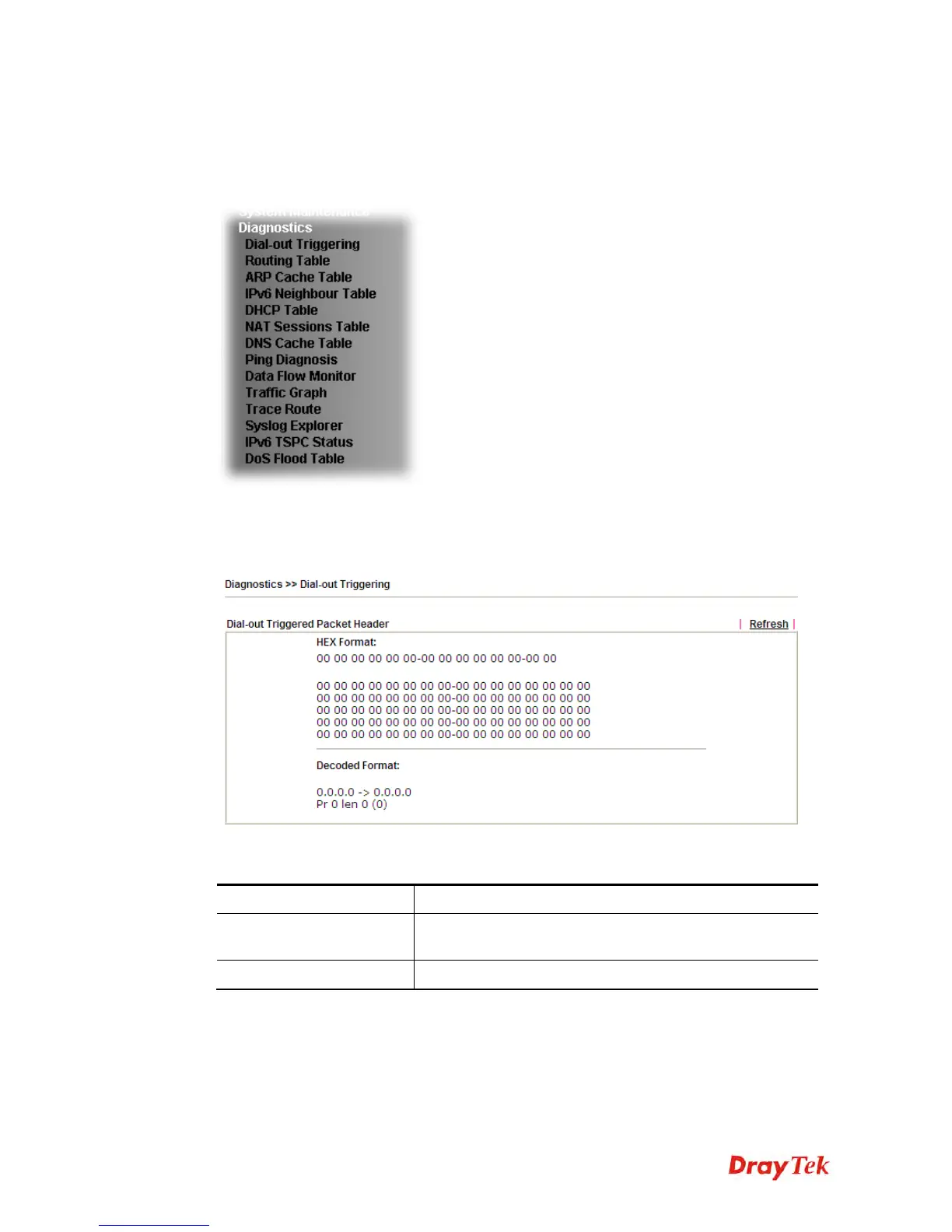 Click Diagnostics and click Dial-out Triggering to open the web page. The internet