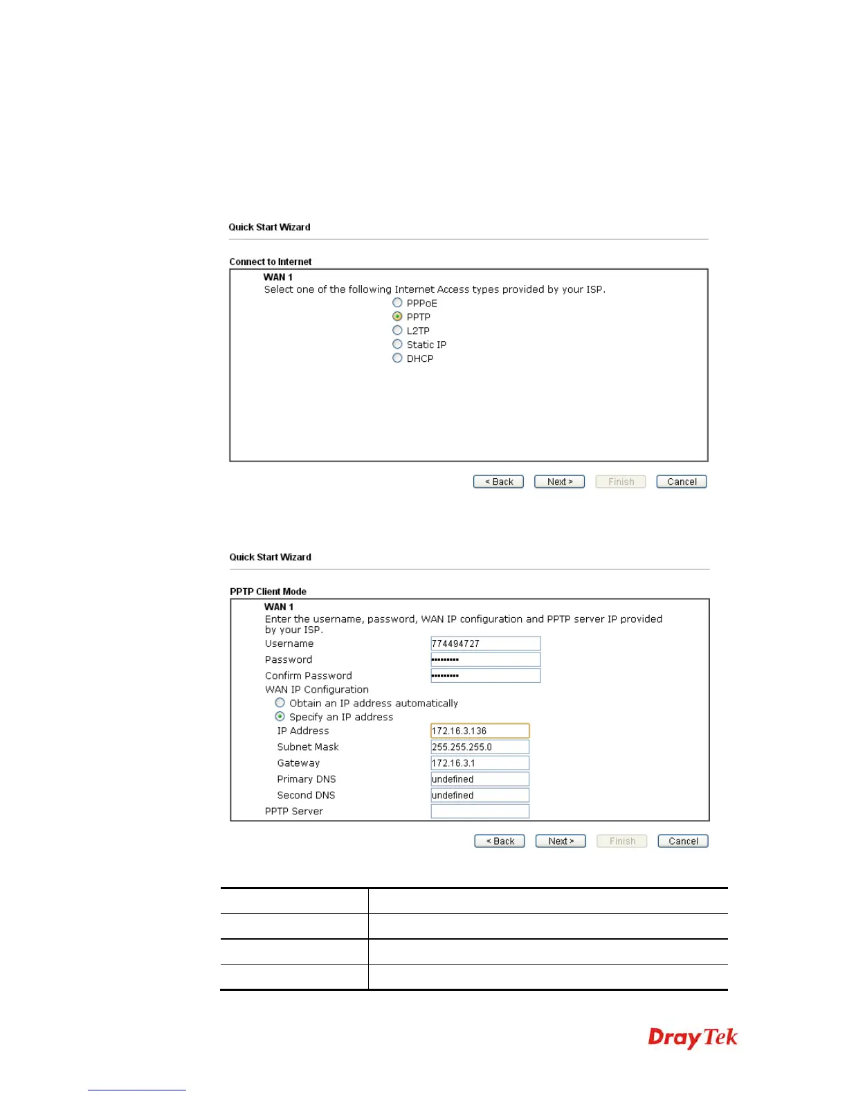 PPTP/L2TP as the Internet Access Type. Then click Next to continue.