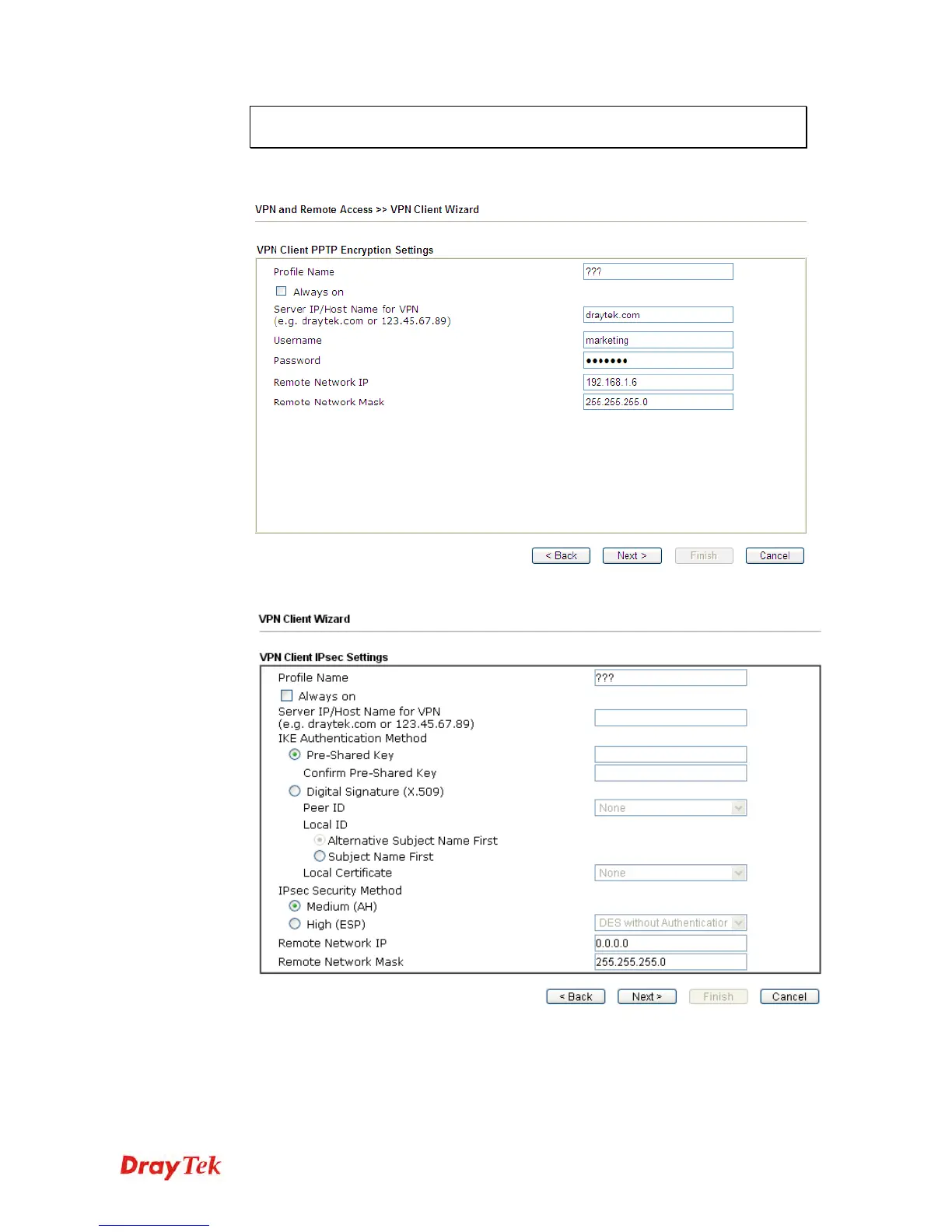 When you choose PPTP (None Encryption) or PPTP (Encryption), you will see the
