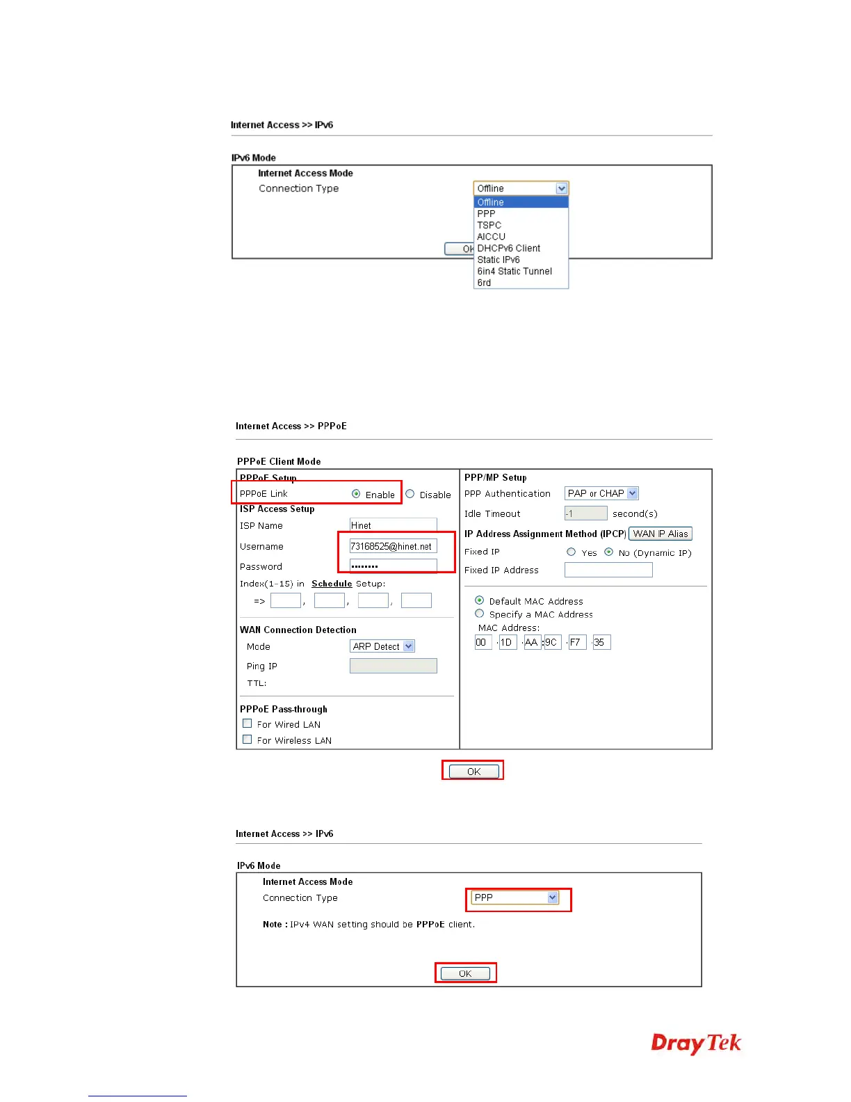 2. In the following figure, use the drop down list to choose a proper connection type.