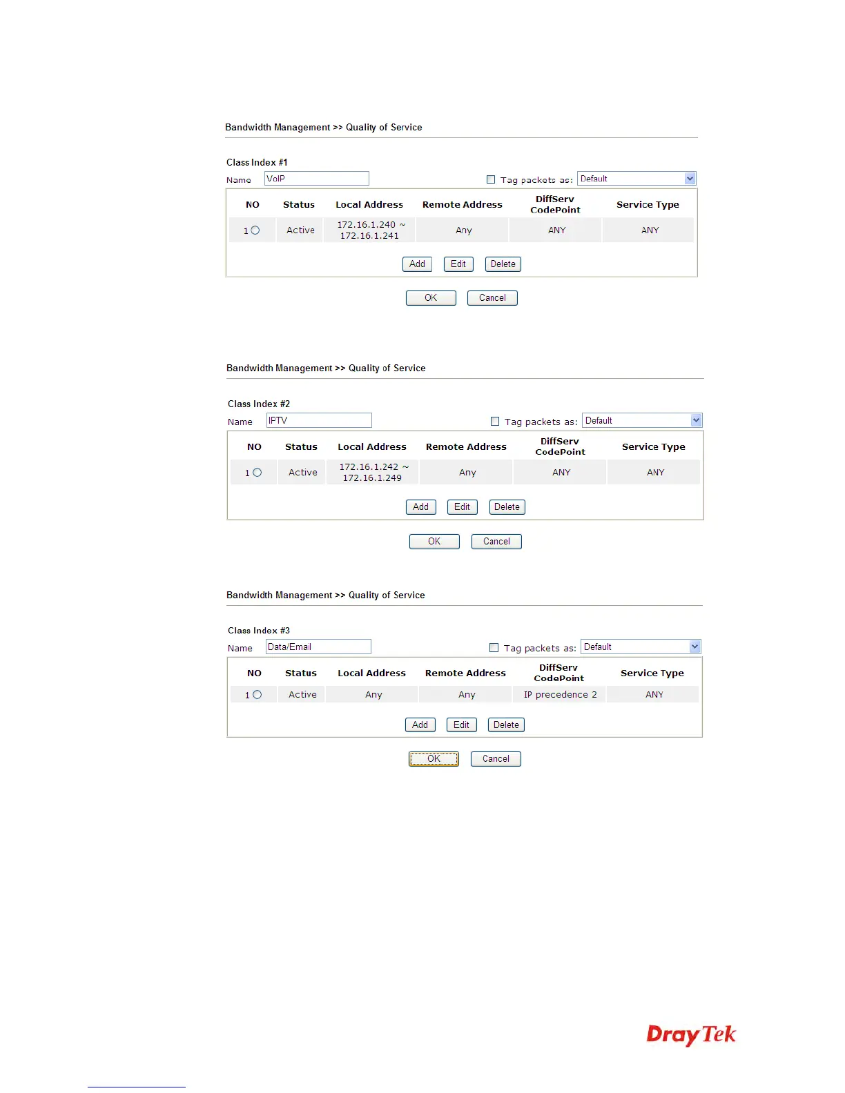 8. Do the same steps to add class rules for IPTV and Data/Email with IP addresses as