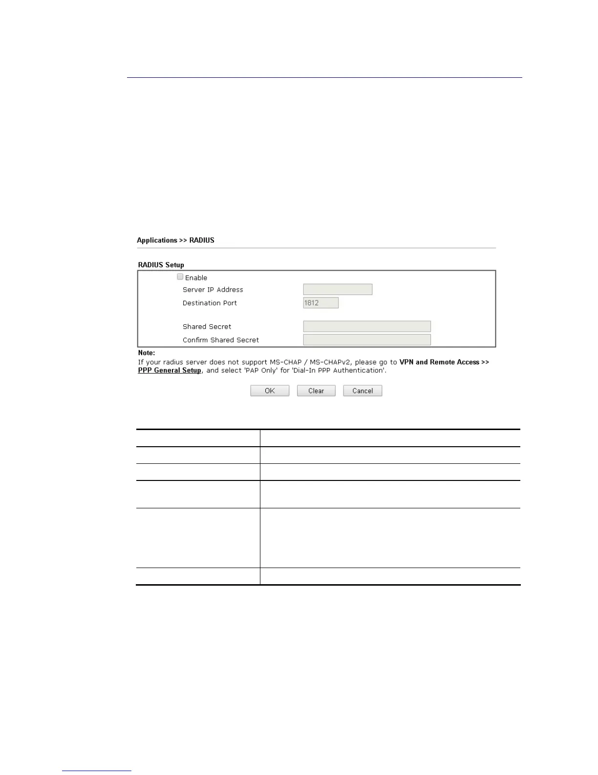 Vigor router can be operated as a RADIUS client. Therefore, this page is used to configure