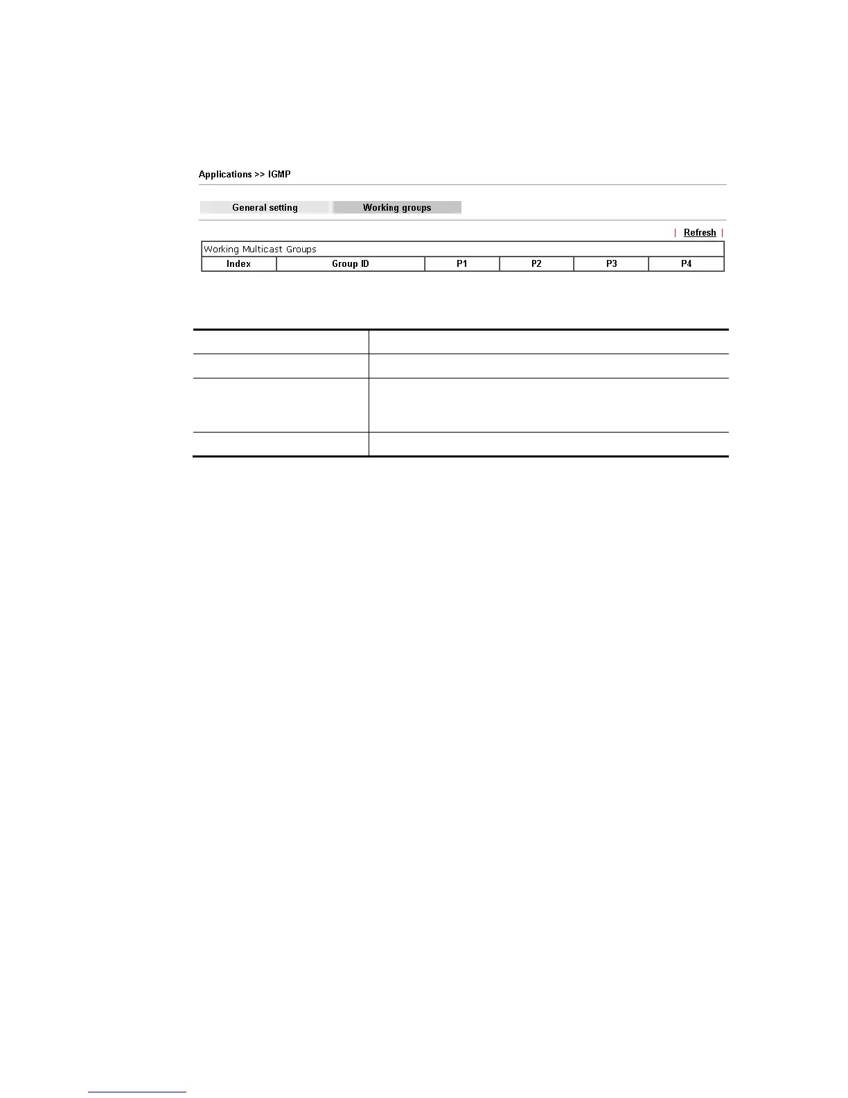 Refresh Click this link to renew the working multicast group status.