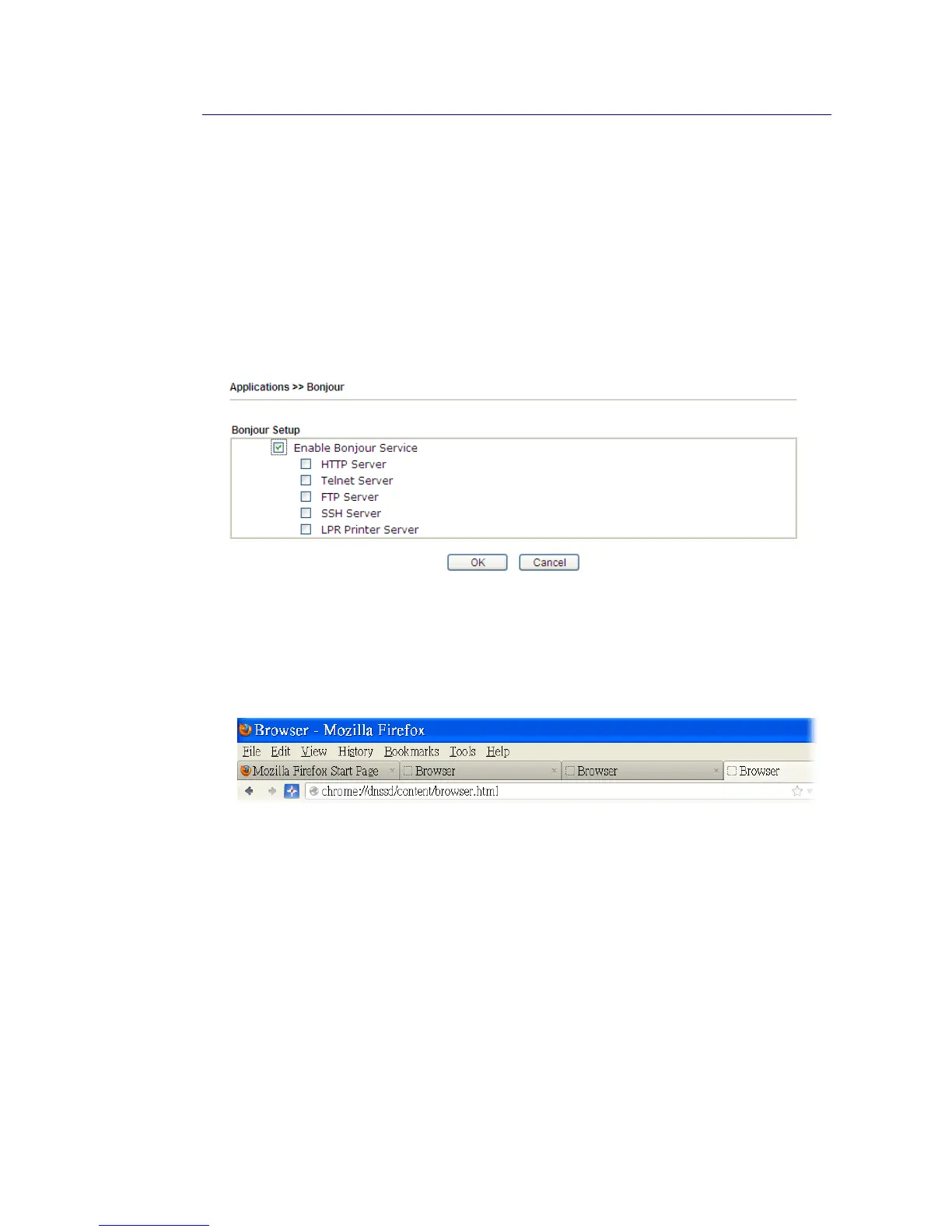 To enable the Bonjour service, click Application>>Bonjour to open the following page. Check