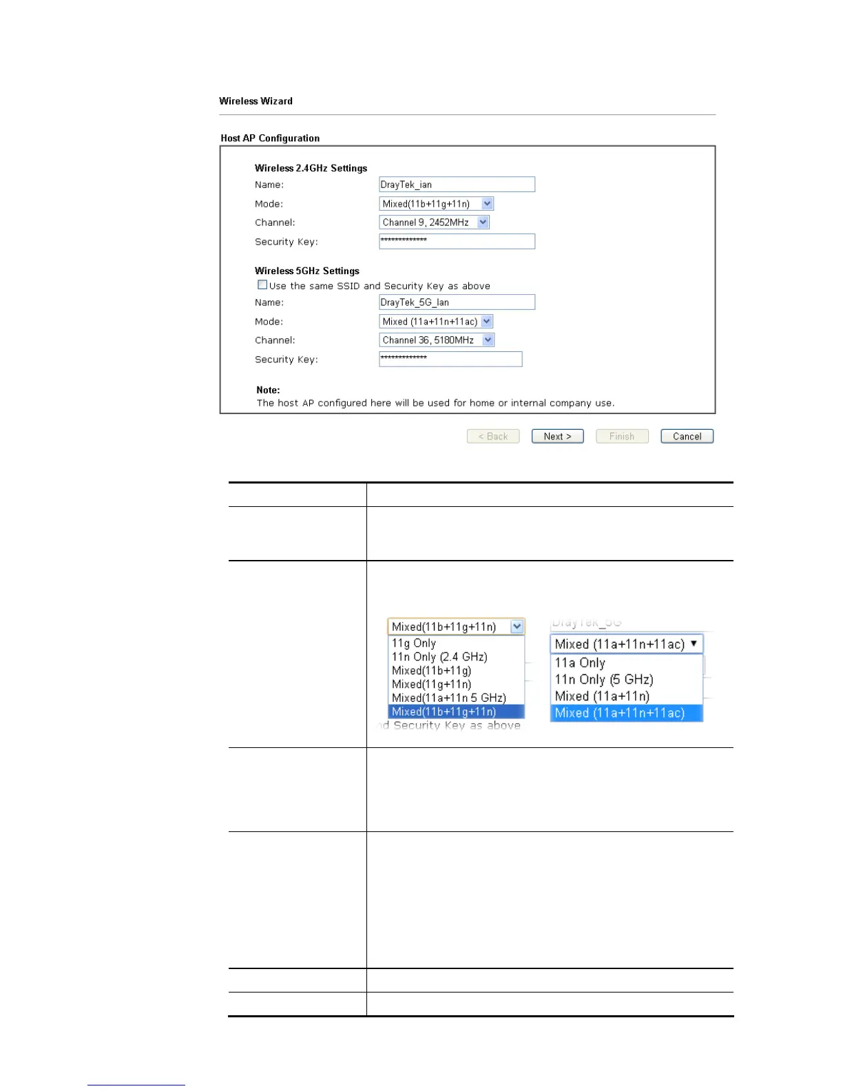 Mode At present, the router can connect to 11a Only, 11n Only,