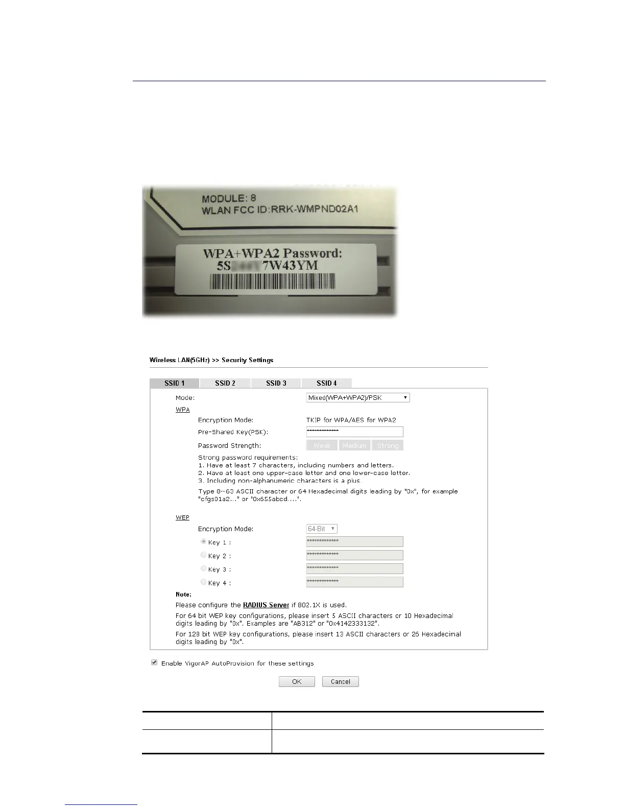 The password (PSK) of default security mode is provided and stated on the label pasted on the