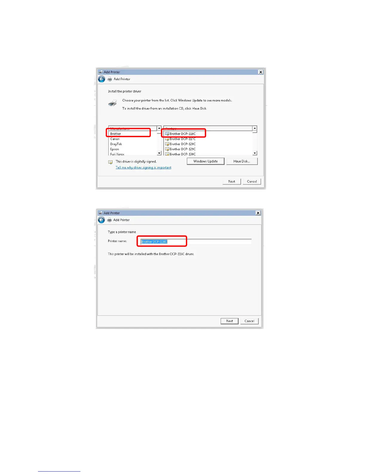 8. Now, your system will ask you to choose right name of the printer that you installed onto