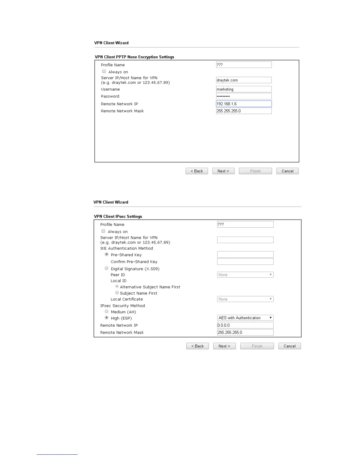 When you choose IPsec, you will see the following graphic: