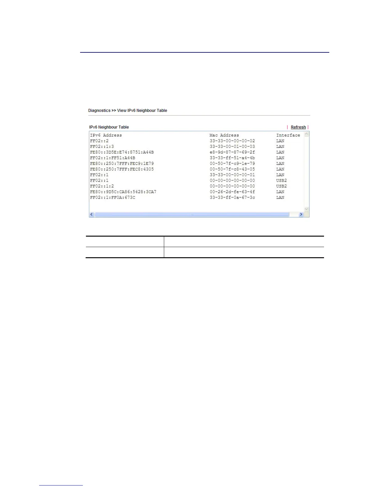 Click Diagnostics and click IPv6 Neighbour Table to open the web page.