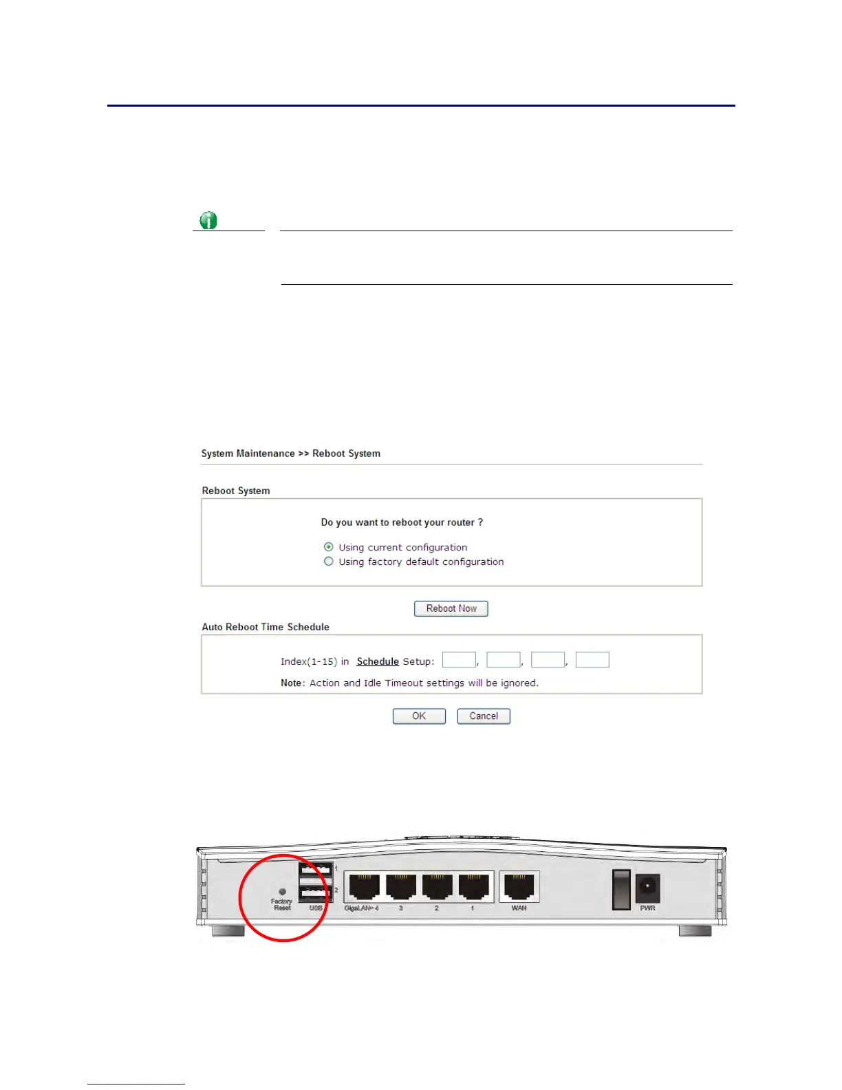Go to System Maintenance and choose Reboot System on the web page. The following screen
