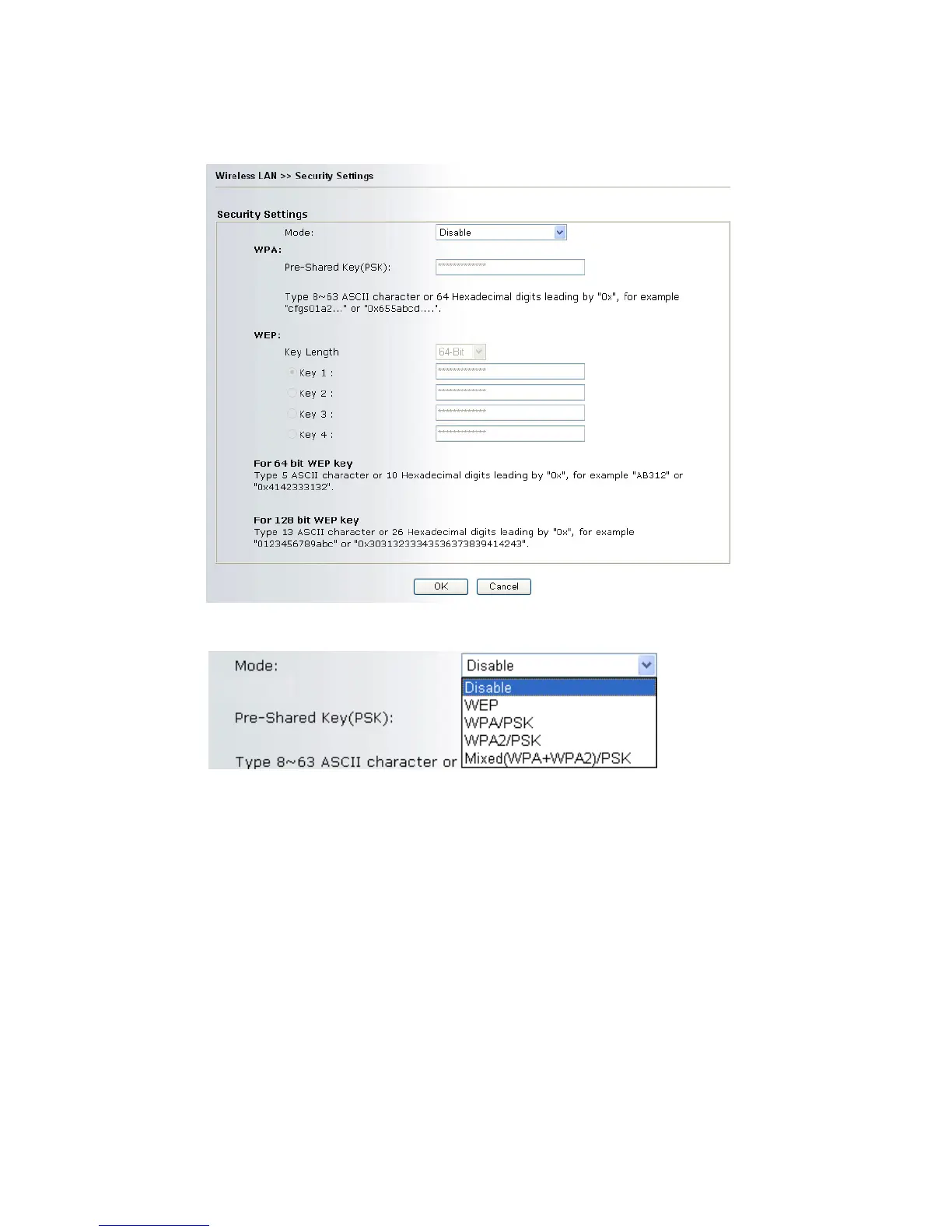 3. For WPA encryption, type in 8~63 ASCII characters or 64 Hexadecimal digits