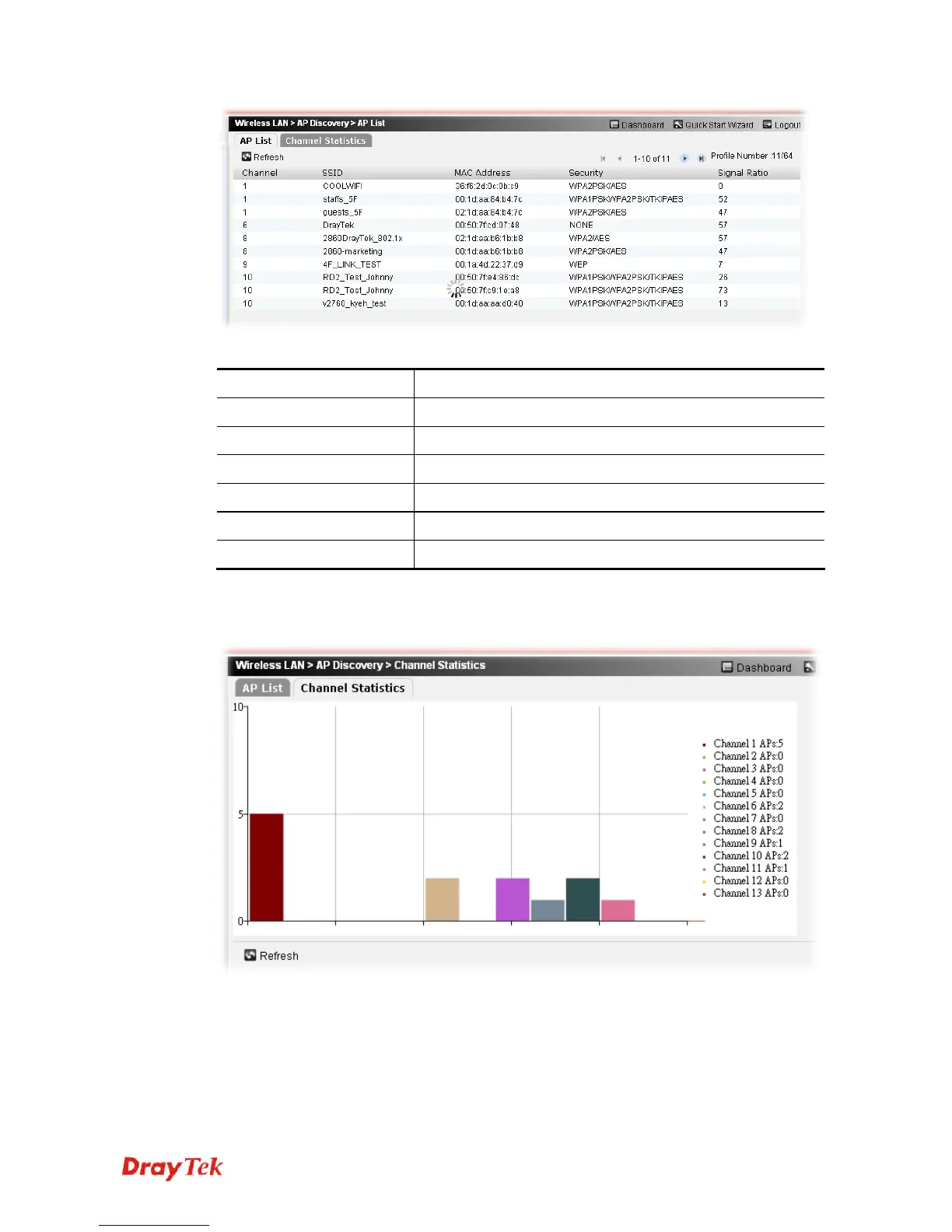 It displays the statistics for the channels used by the APs scanned by Vigor2760.