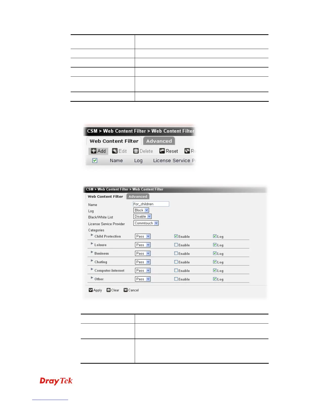 Block – Only the log about Block will be recorded in Syslog.