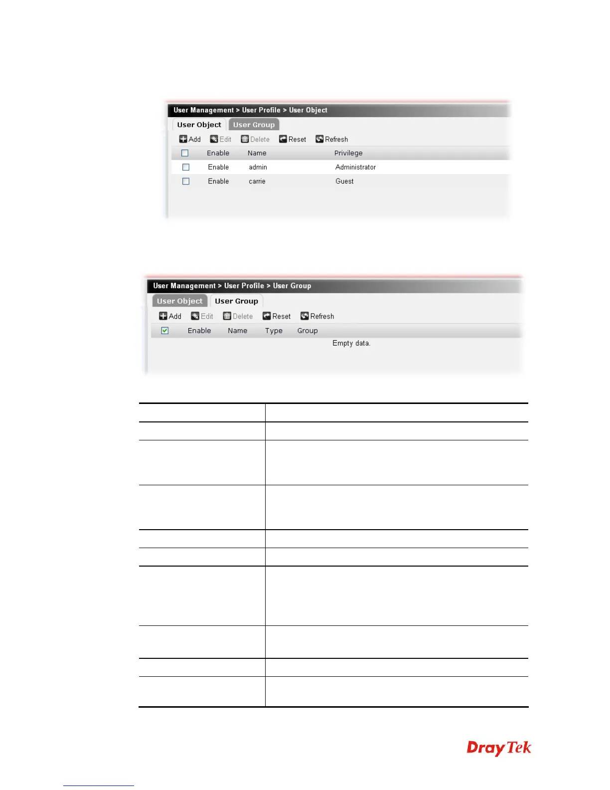 Disable – The user group profile is not available for