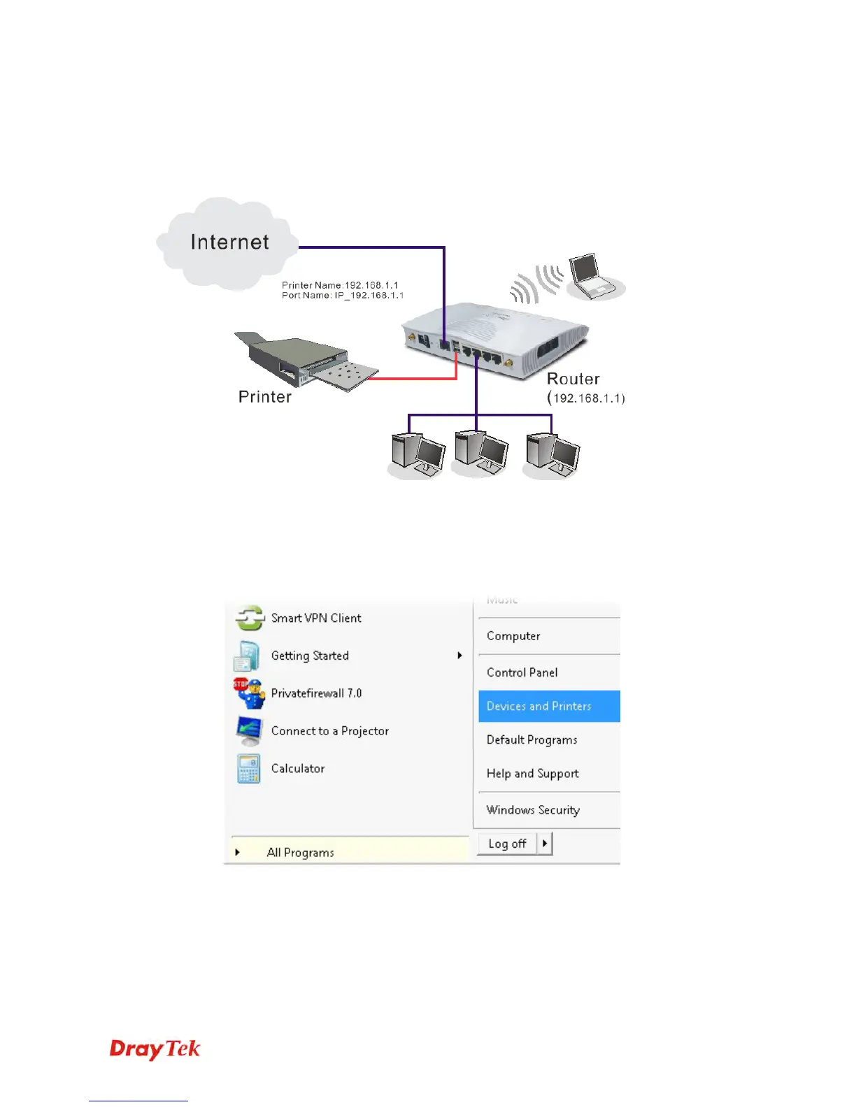 can print documents via the router. The example provided here is made based on Windows 7.
