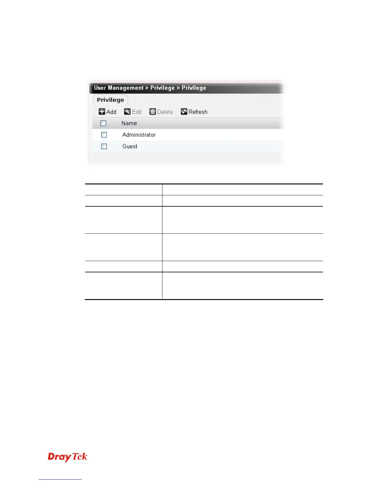 privilege represents different authority that the user group will have. The great the authority is,