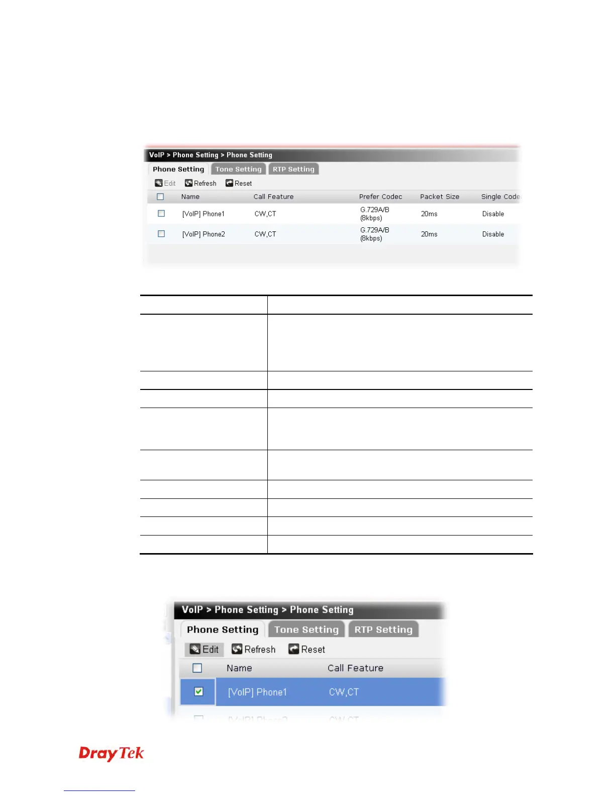 This page allows user to set phone settings for Phone 1 and Phone 2 respectively. However, it