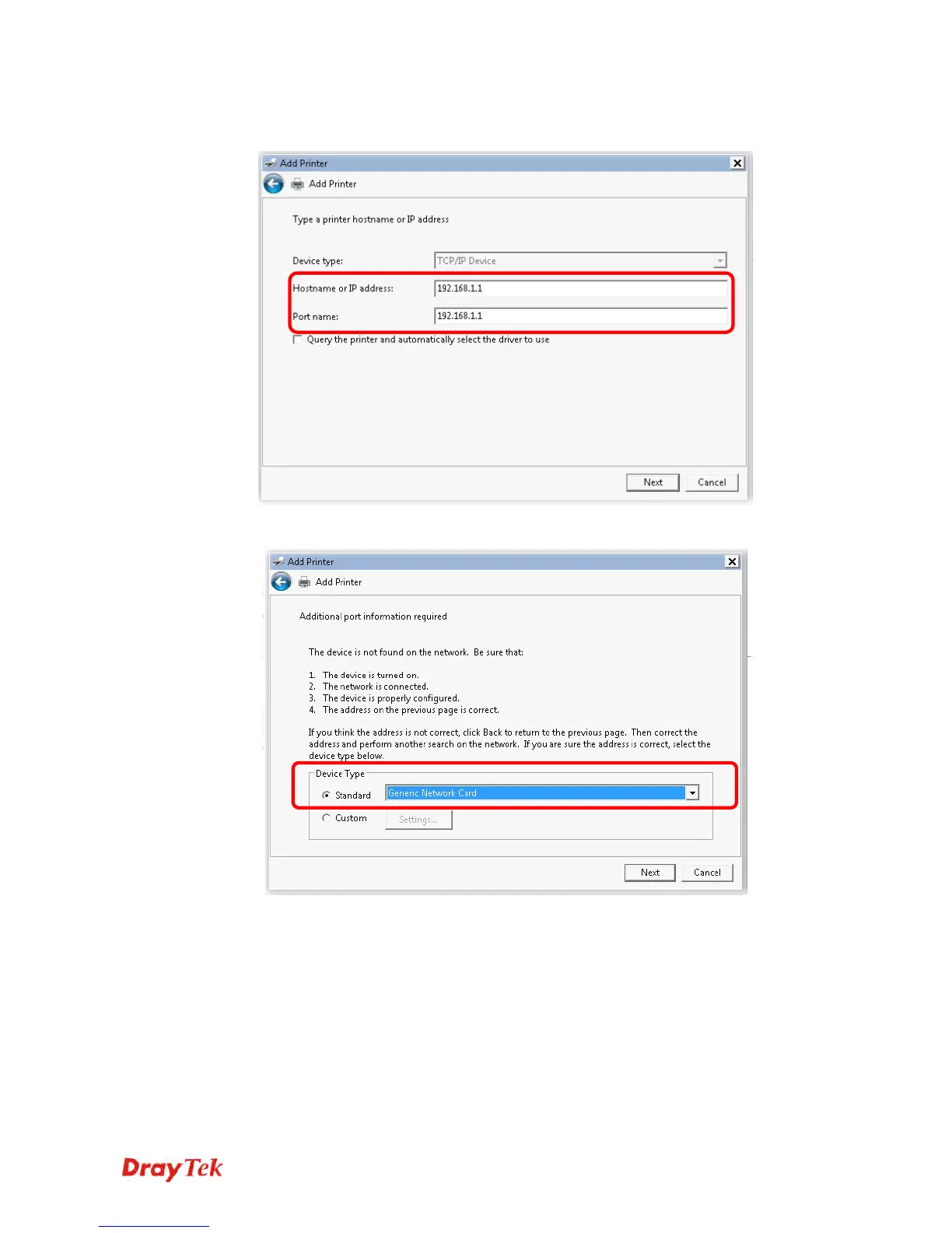 IP Address and type 192.168.1.1 as the Port name. Then, click Next.