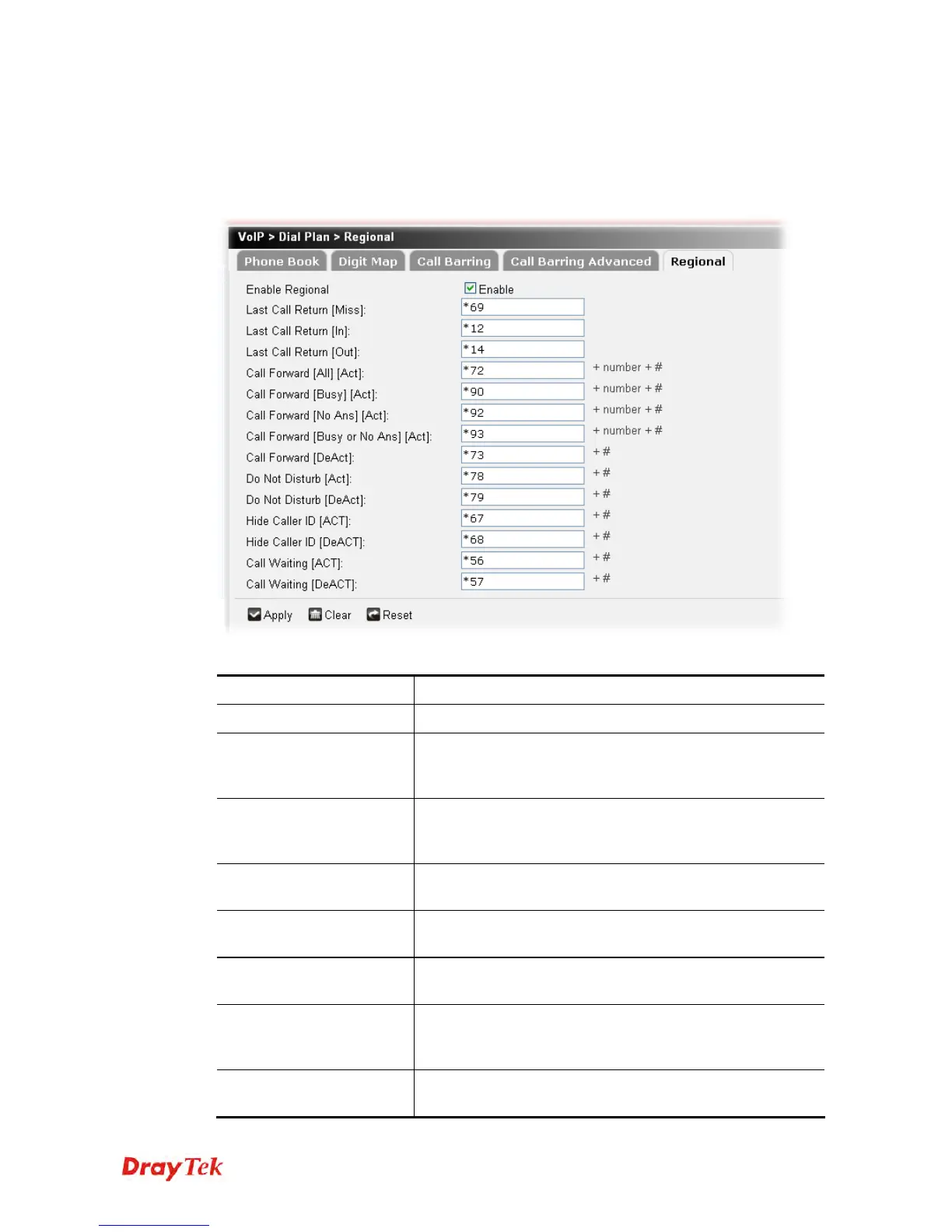 This page allows you to process incoming or outgoing phone calls by regional. Default values