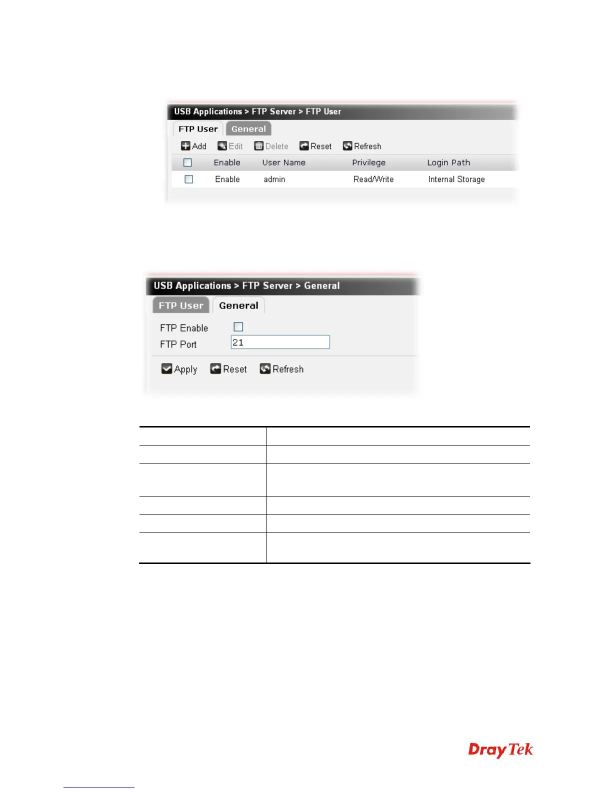 This page allows you to enable/disable the FTP function and configure the port number for