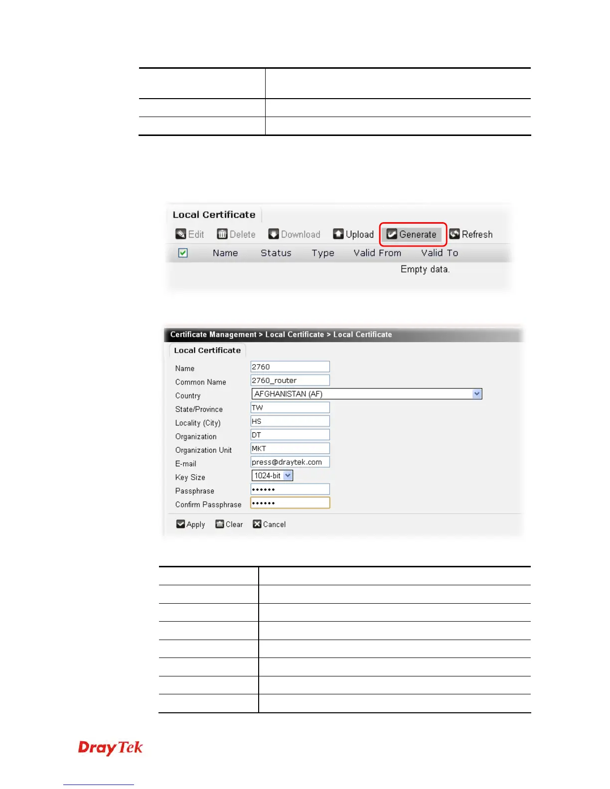 To generate a new certificate request profile, please do the following: