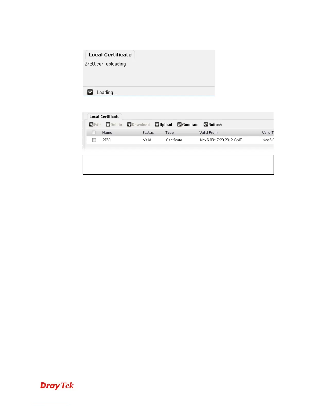 9. The Certificate has been uploaded to Vigor router and displayed on this page.