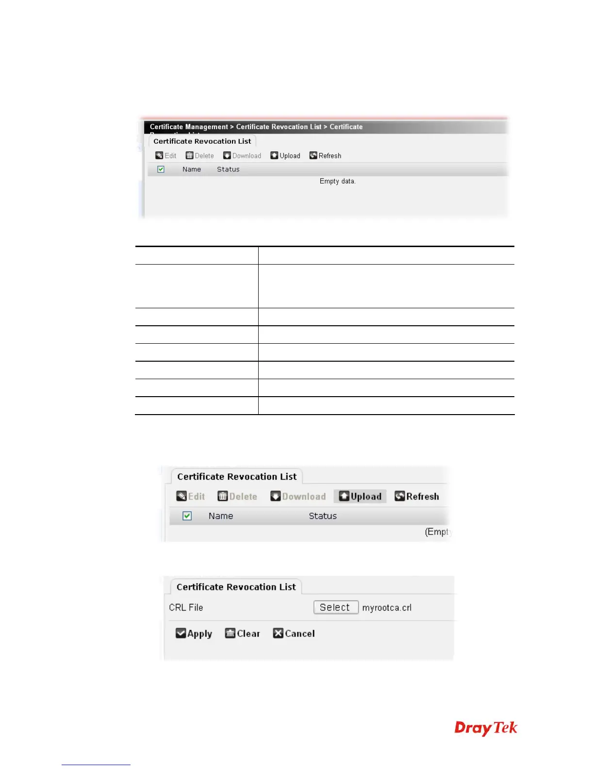 Revocation List obtained from other sources and stored on the PC can be uploaded to Vigor