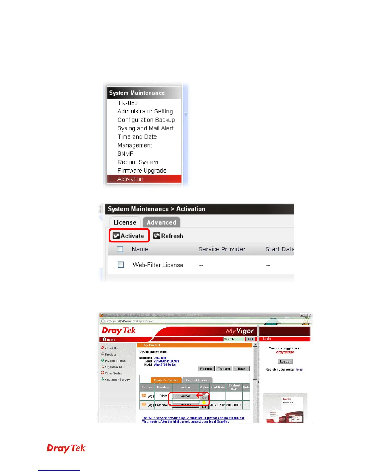 You have to register the user account and Vigor device (refer to section 3.1) before activating