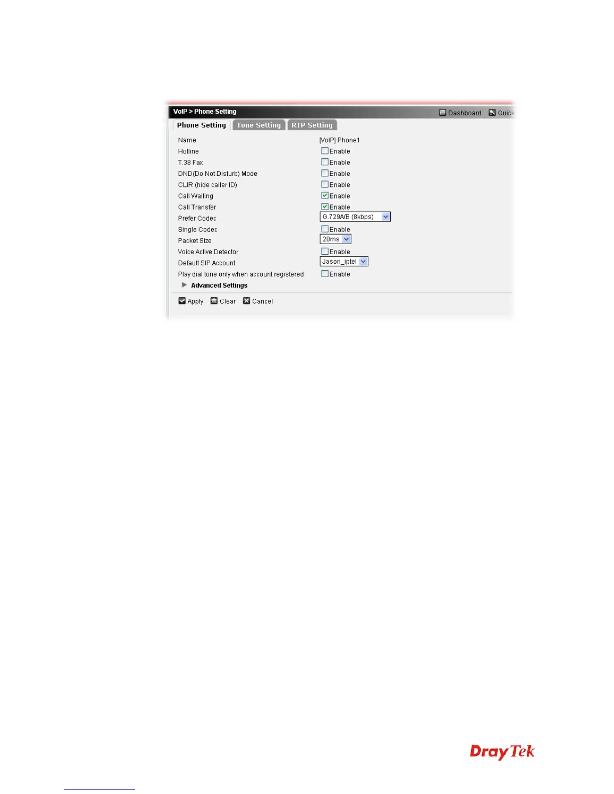 8. Click Edit to open the following page. Use the default settings. Choose Jason_iptel (SIP