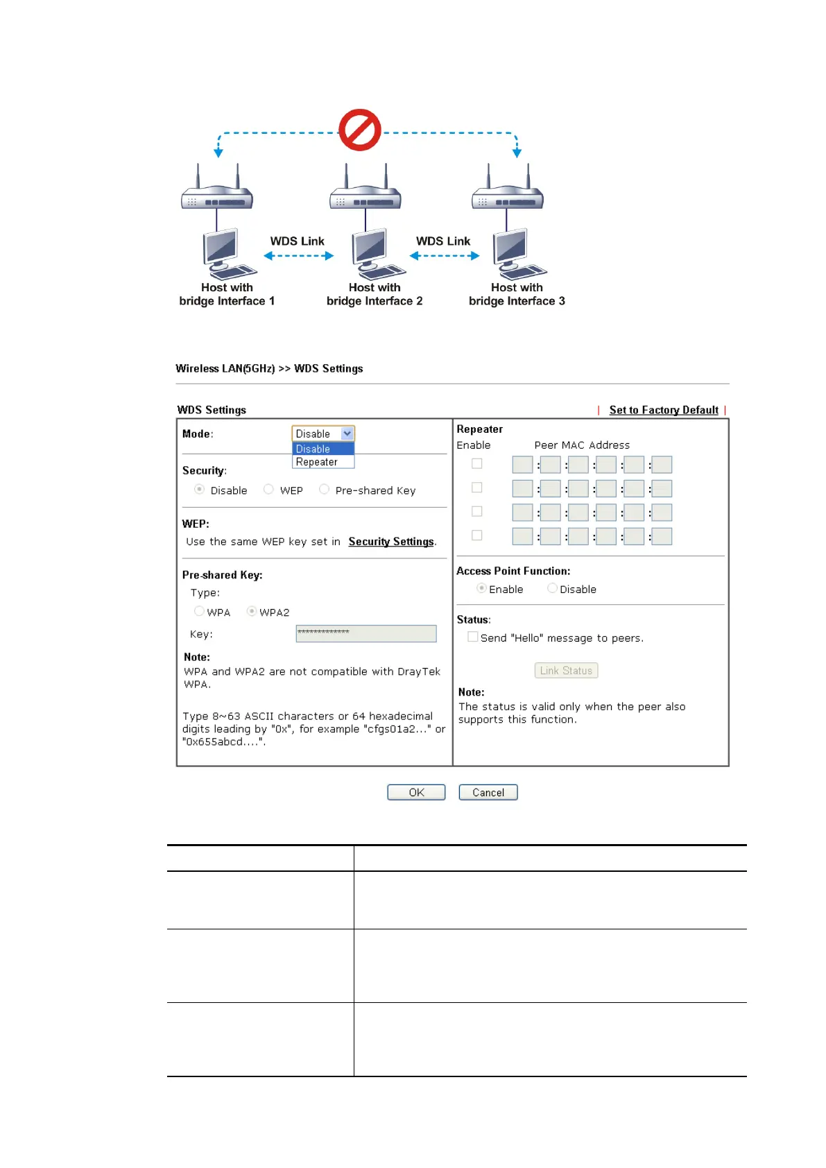 Mode Choose the mode for WDS setting. Disable mode will not