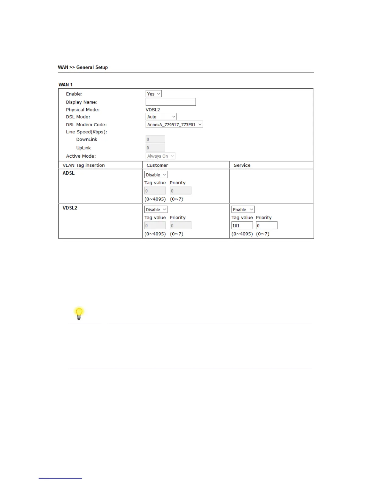 • DSL mode can be set to “VDSL2 only” but this is not required