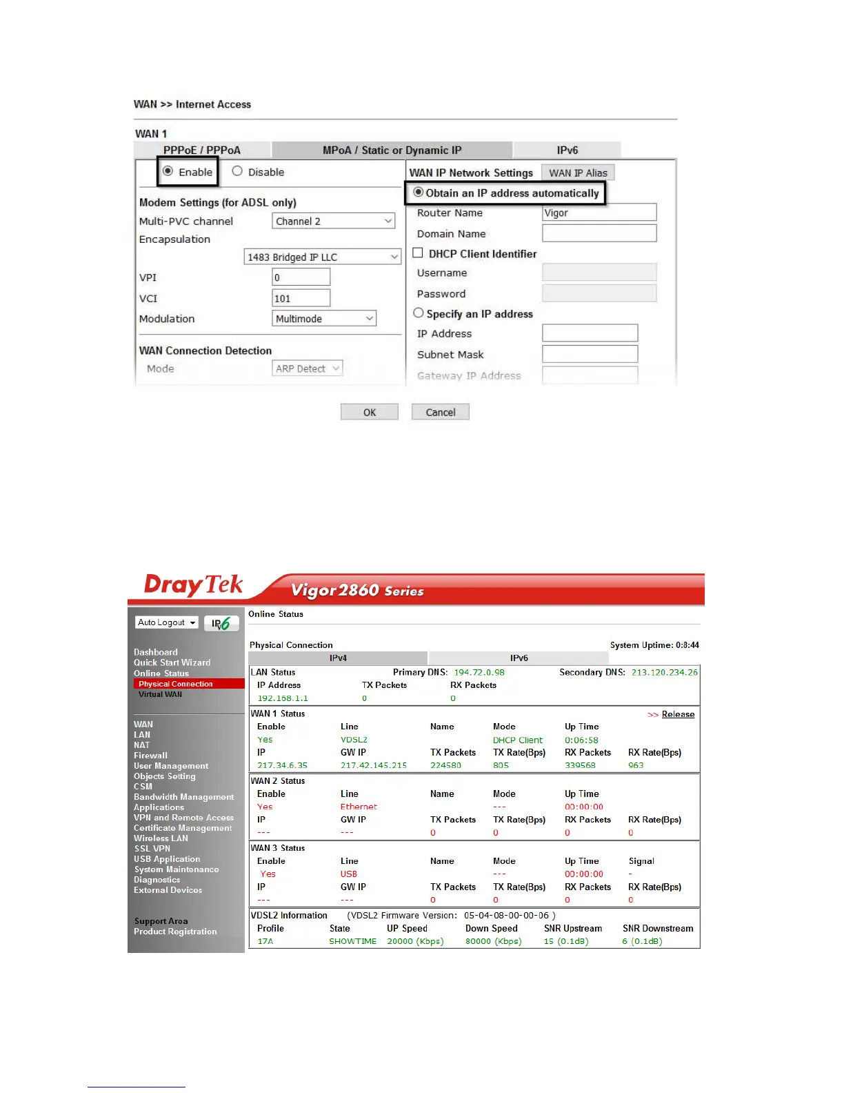 5. Once the router has restarted, the [Online Status] > [Physical Connection] page