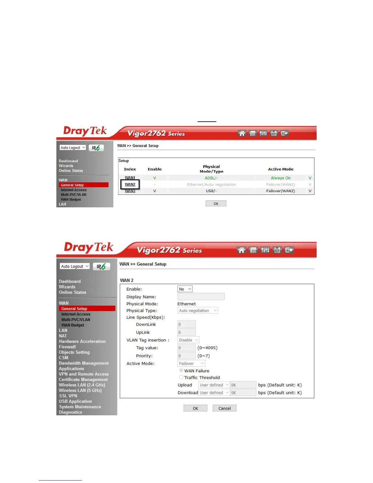 To enable the router’s Ethernet WAN port on GigaLAN4 instead of LAN mode: