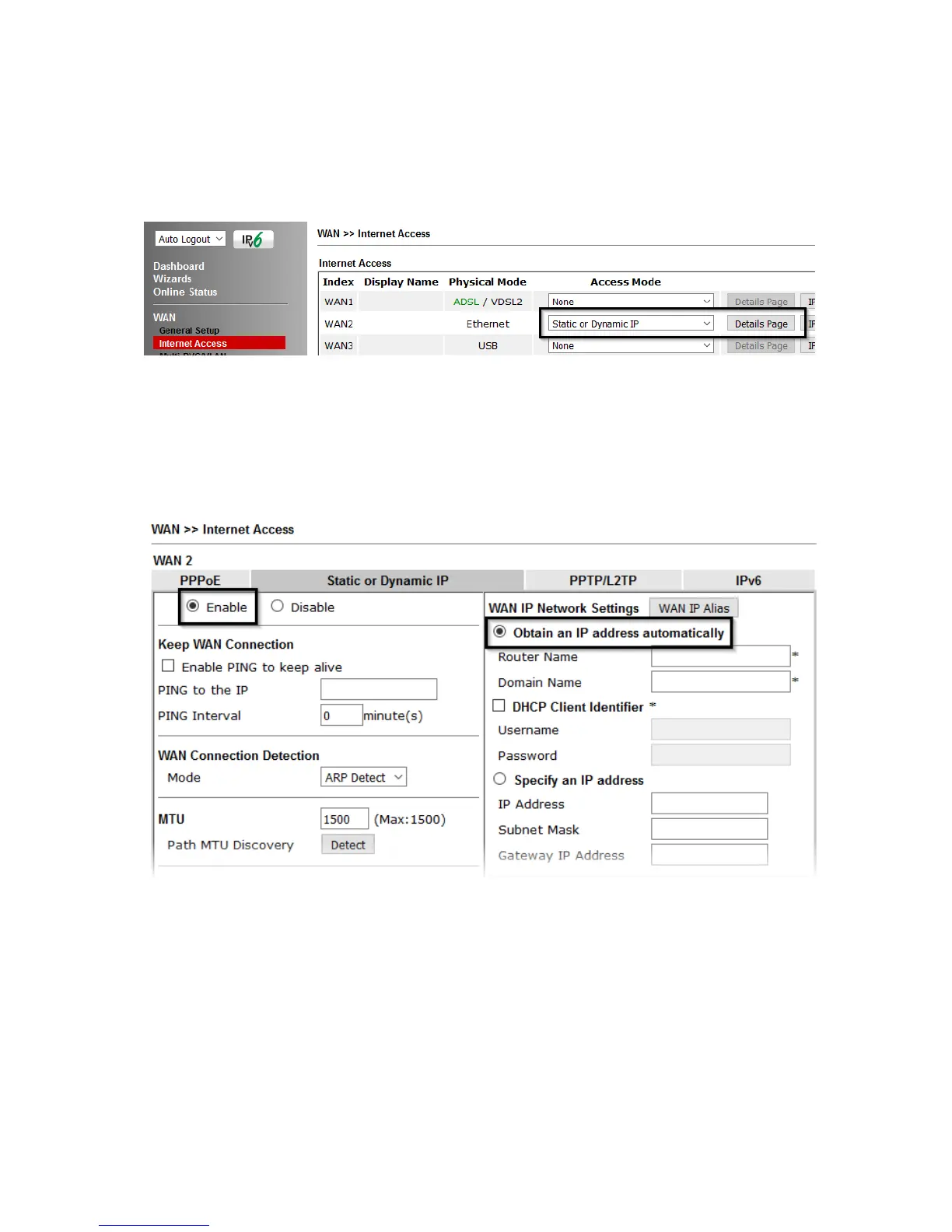 Firstly set the WAN2 Access Mode to Static or Dynamic IP, then click the Details