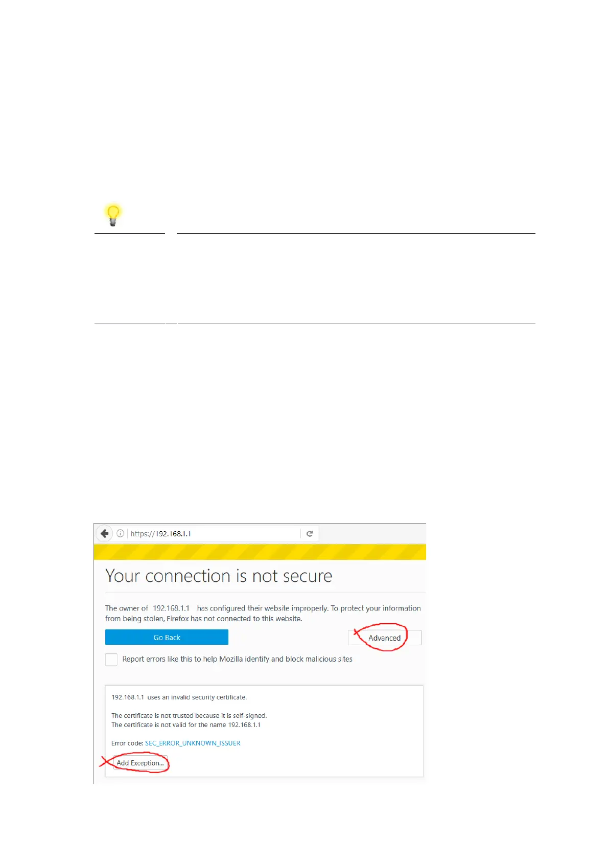 An example of how to access the router via HTTPS with Mozilla Firefox: