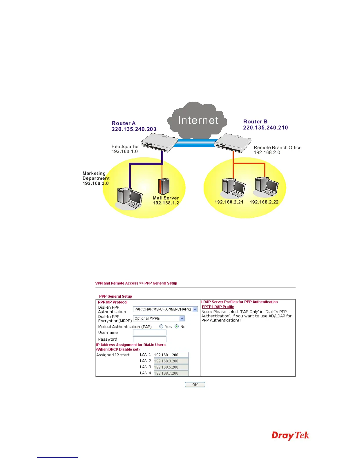 below illustration, you may follow the steps to create a LAN-to-LAN profile. These two