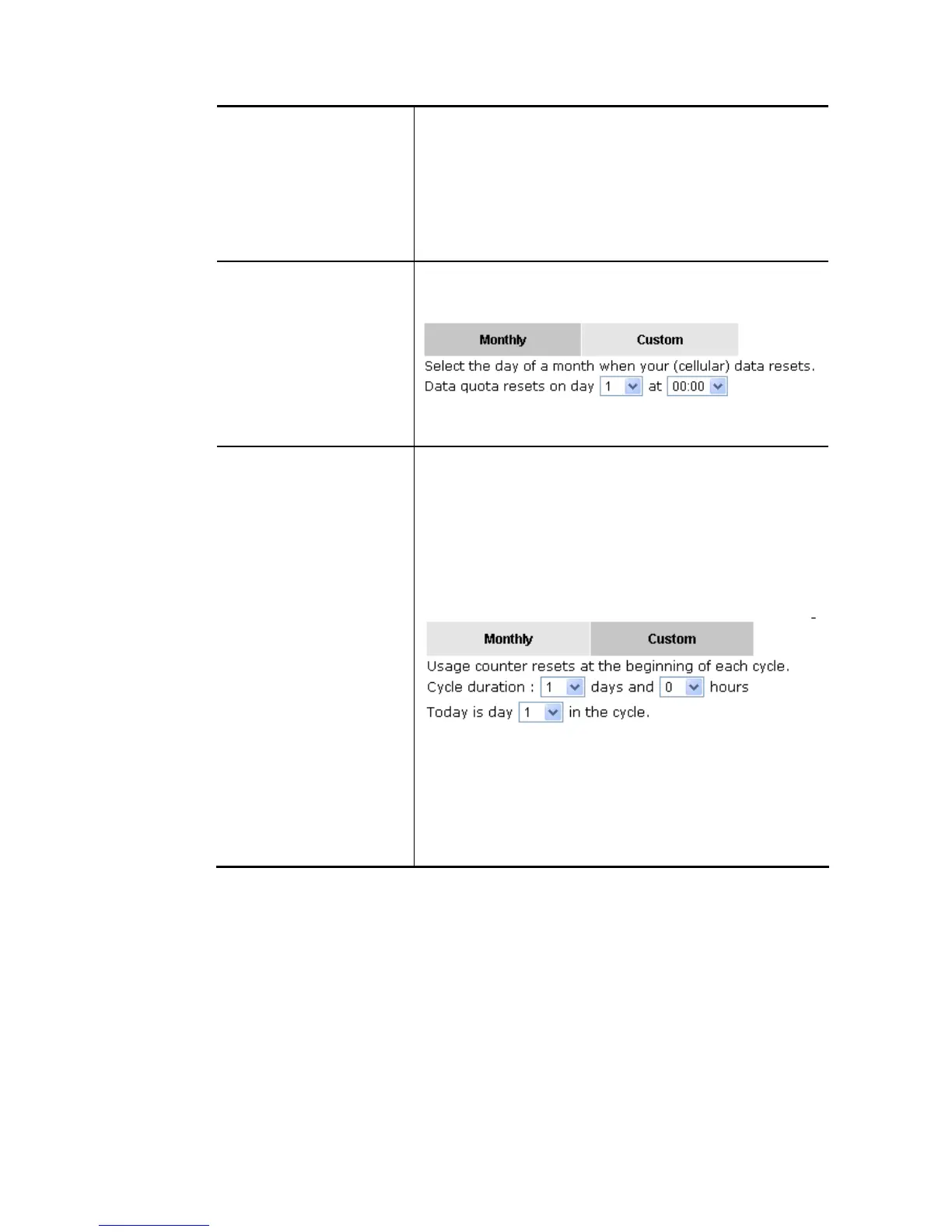 Data quota resets on day … – You can determine the starting