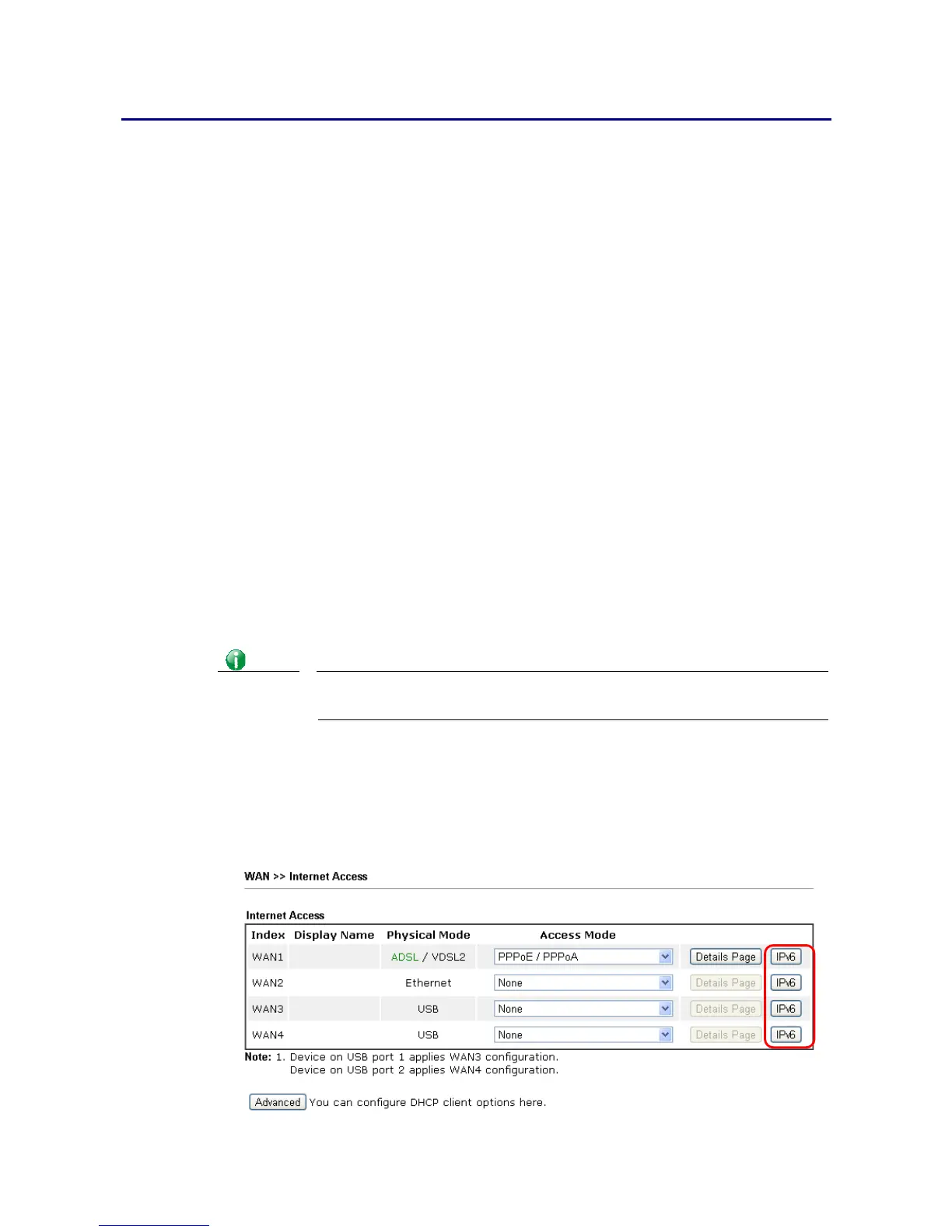 one of the WAN interfaces as the one supporting IPv6 service. Then, click the IPv6