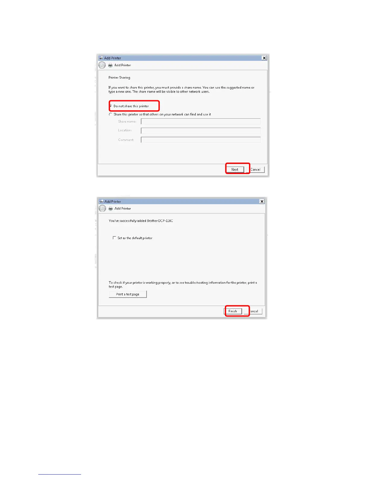 10. Choose Do not share this printer and click Next.