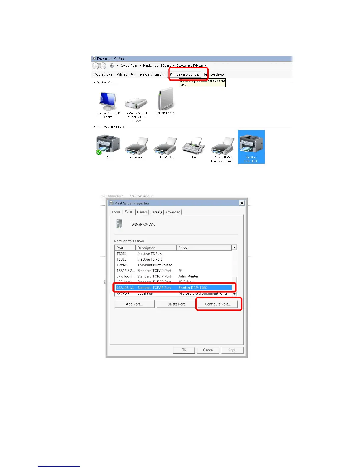 13. Edit the property of the new printer you have added by clicking Configure Port.