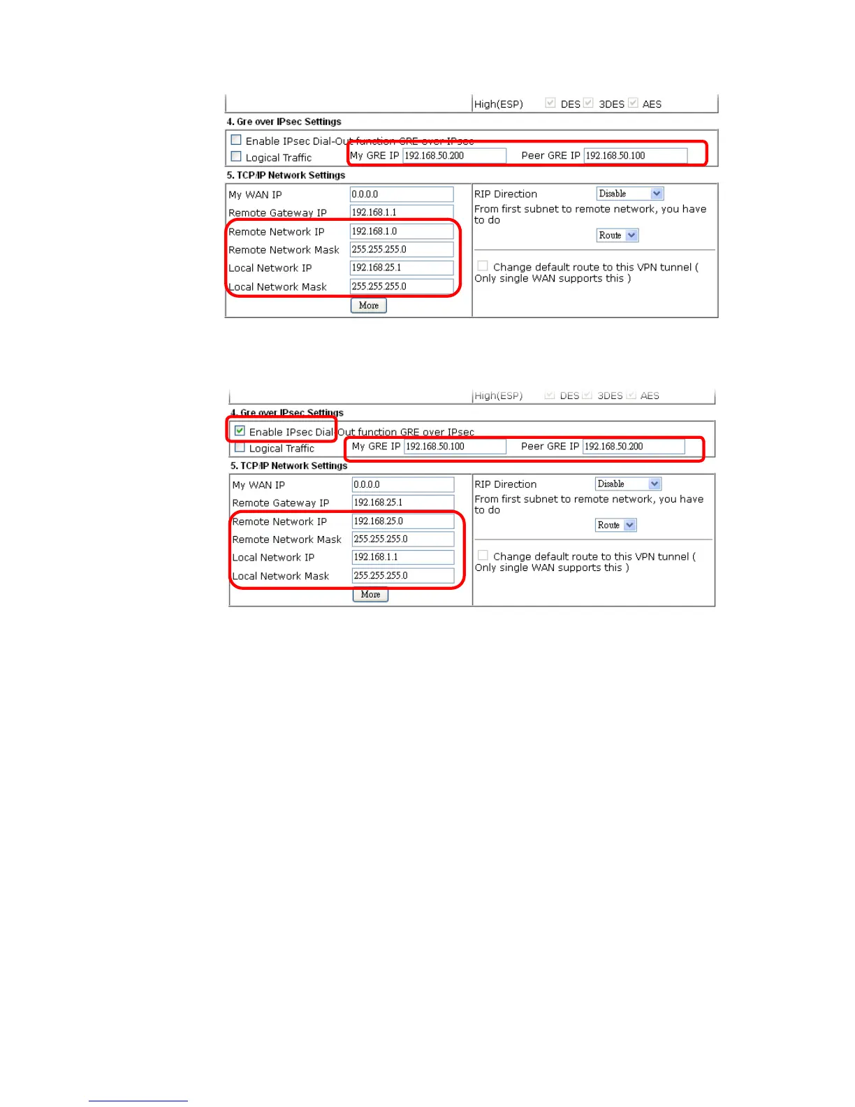 3. Later, on peer side (as VPN Client): please type 192.168.50.100 in the field of My GRE IP