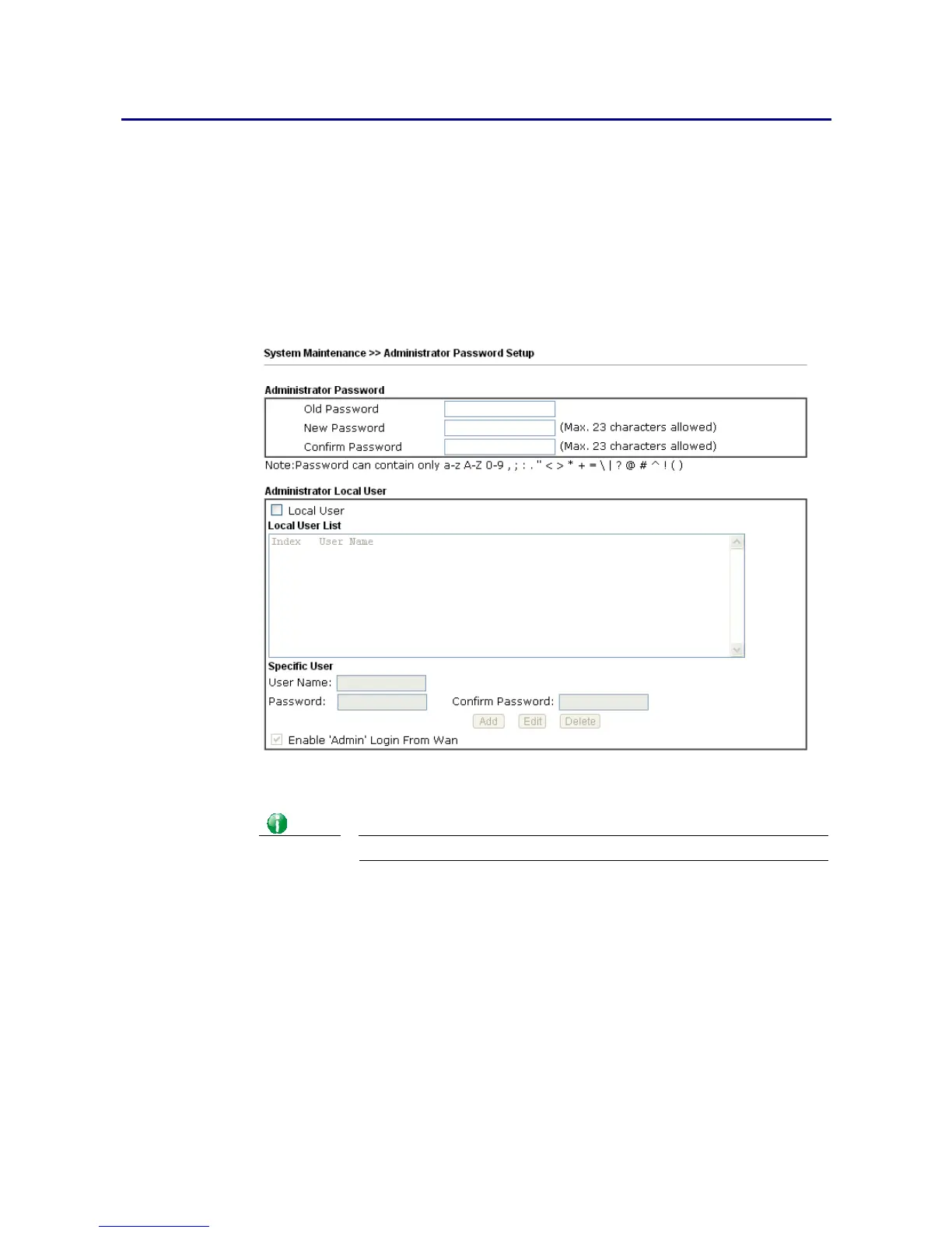 4. Enter the login password (the default is “admin”) on the field of Old Password. Type