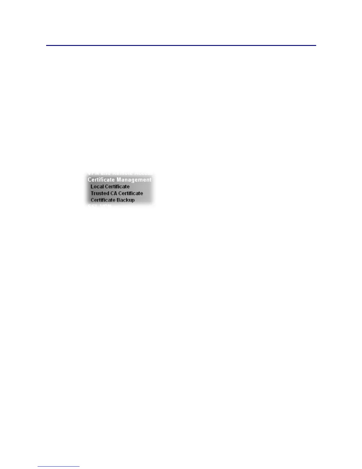 Below shows the menu items for Certificate Management.