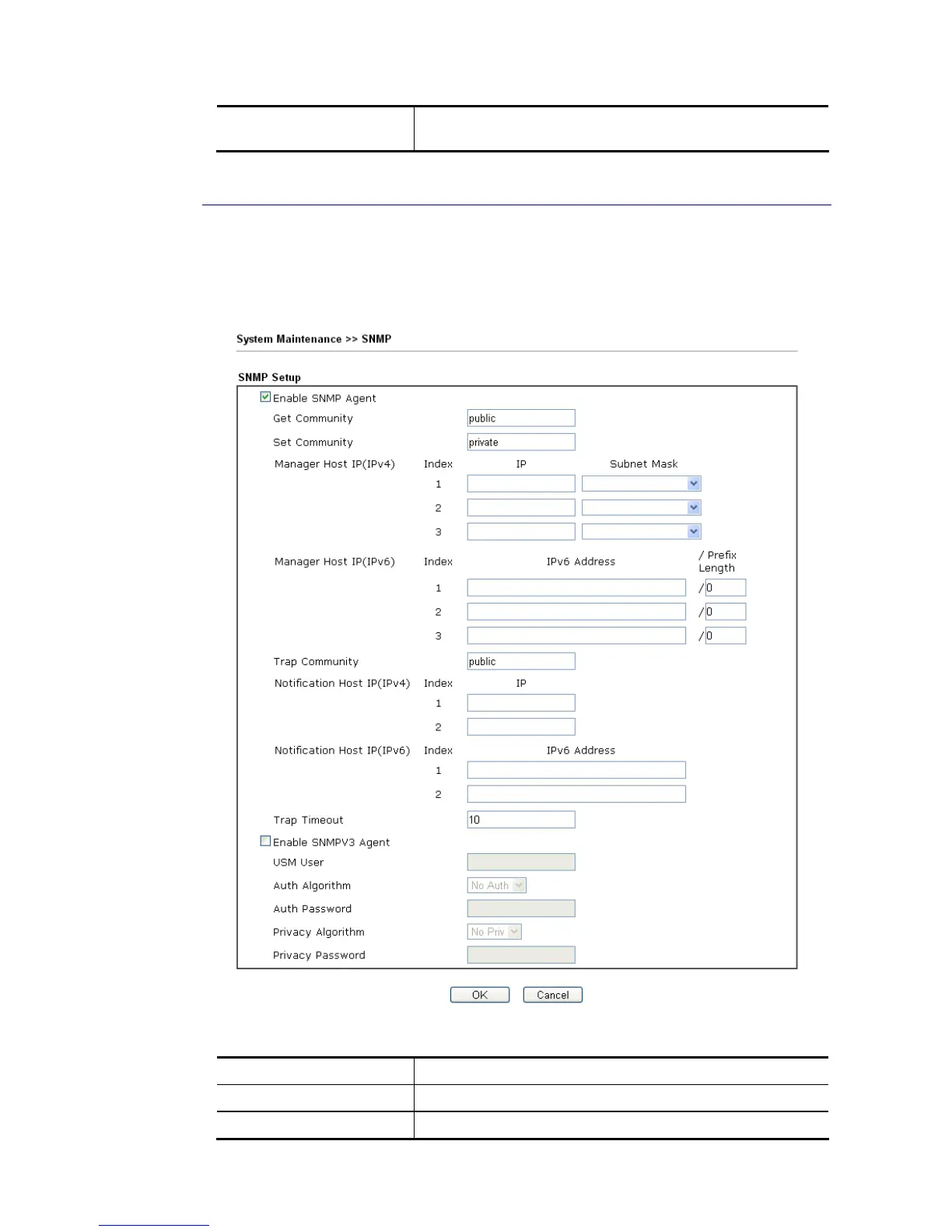 Enable SNMP Agent Check it to enable this function.