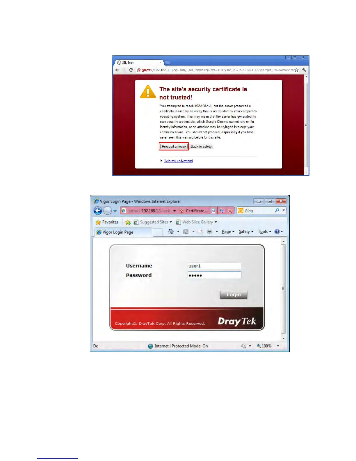 With Chrome browser, you may get the following warning. Click Proceed