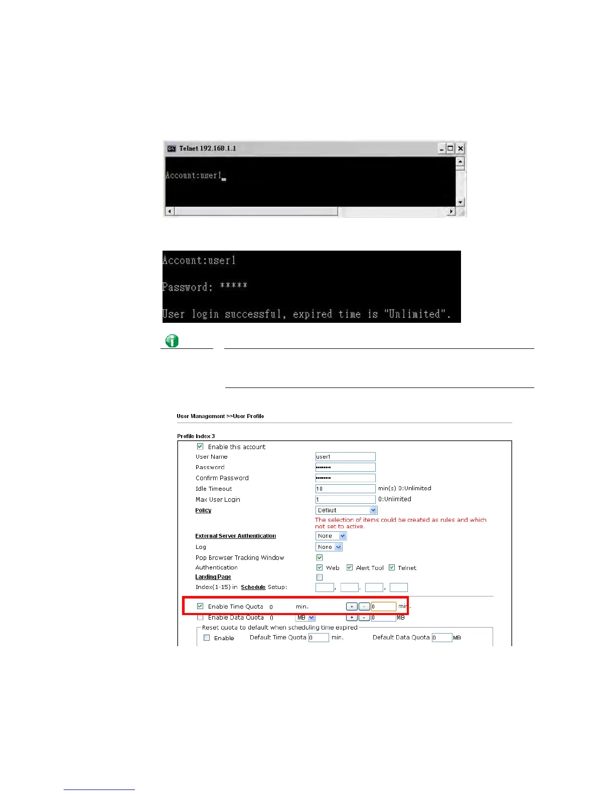 Here expired time is “Unlimited” means the Time Quota function is not